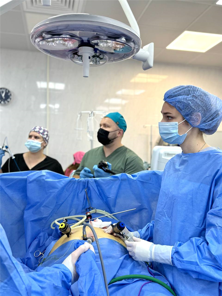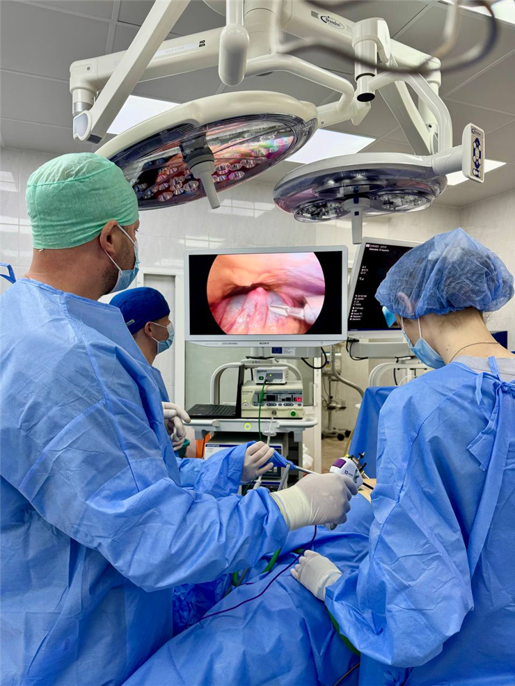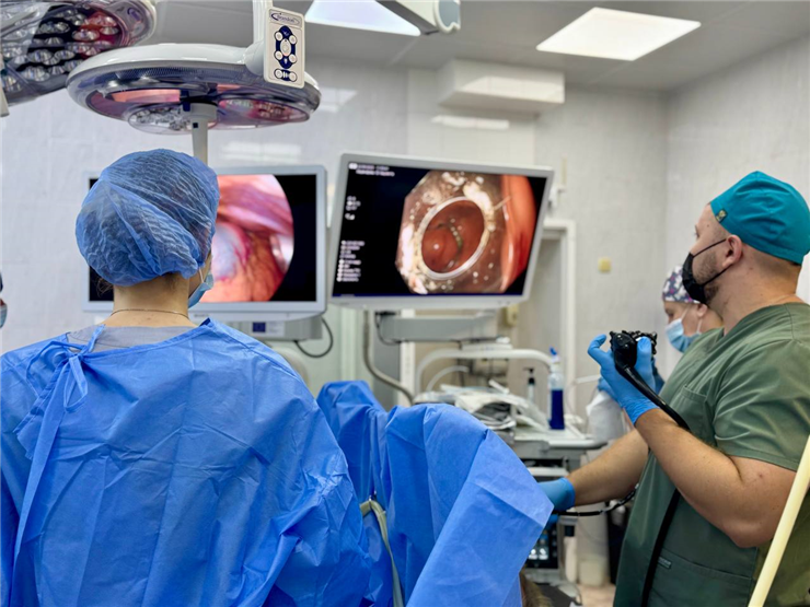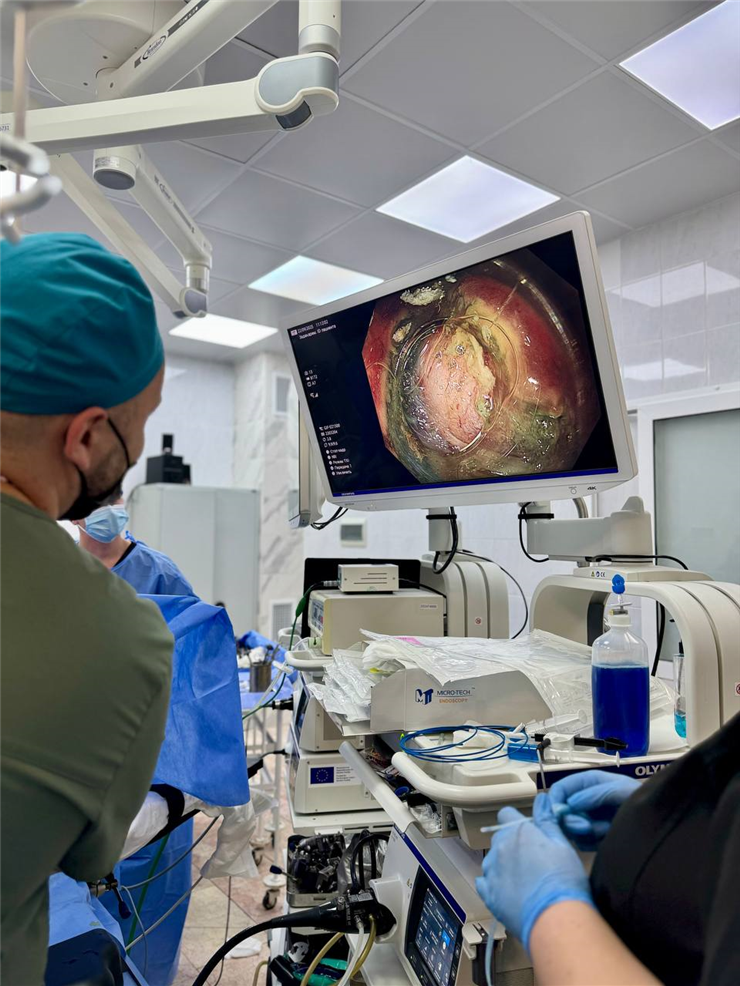 Лапаро-ендоскопічна кооперативна хірургія (LECS)Лапаро-ендоскопічна кооперативна хірургія (LECS) – це сучасна малотравматична методика, яка поєднує два підходи, • лапароскопію – хірургічний метод, який дозволяє проводити діагностичні та лікувальні процедури на органах черевної порожнини через невеликі проколи (5-10 мм) замість традиційних великих розрізів • ендоскопію – мініінвазивний метод діагностики та лікування, що дозволяє лікареві оглянути внутрішні органи за допомогою спеціального інструмента – ендоскопа, тонкої трубки з камерою, що вводиться всередину шлунку чи кишківника, щоб бачити пухлину зсередини в даному випадку. Завдяки поєднанню цих методів хірург може точно знайти й акуратно видалити пухлину. Це дозволяє: • зменшити біль після операції, • скоротити час відновлення, • знизити ризик ускладнень, • краще зберегти функцію шлунку та кишківника. LECS найчастіше застосовують при лікуванні раннього раку шлунку та невеликих доброякісних пухлин. Методика була вперше застосована в Україні у відділенні торако-абдомінальної хірургії Національного Наукового центру хірургії та трансплантології ім. О.О.Шалімова. У цілому, LECS є важливим кроком уперед у гастроінтестинальній та онкохірургії, пропонуючи пацієнтам безпечніший та менш травматичний метод лікування з відмінними клінічними результатами. Із розвитком технологій та накопиченням досвіду сфера застосування цього методу постійно розширюється. В представленому випадку, завдяки спільній праці хірургів та ендоскопістів, була видалена рідкісна нейрофіброма шлунку. Пацієнтка була виписана на 3-й день після операції.
